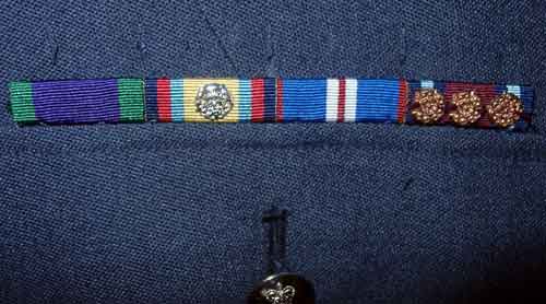 "...the Medal shall be worn on the left breast suspended from a ribbon one inch and a quarter in width of dark crimson, with at both edges three stripes in dark blue, light blue, and dark blue respectively, each one-eighth of an inch in width."